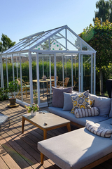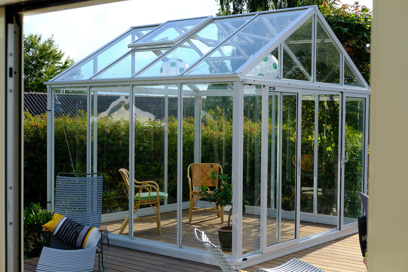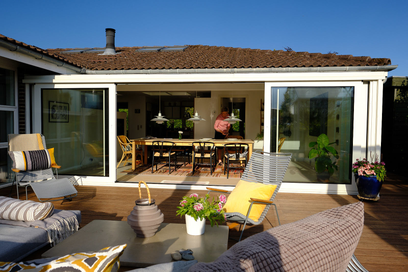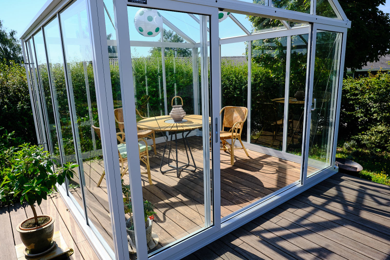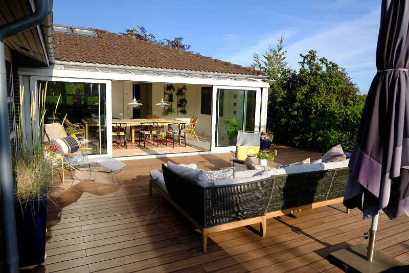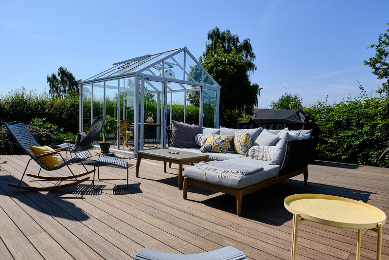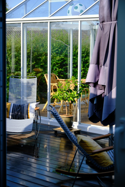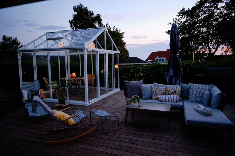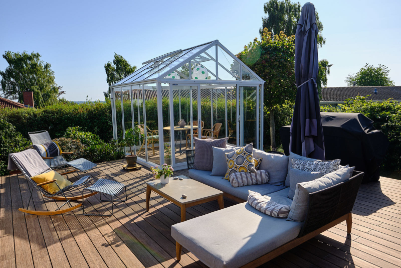 På terrassen blev samtidig opført orangeri, så familien nu har rig mulighed for at nyde det udendørs liv både i sol og regn.